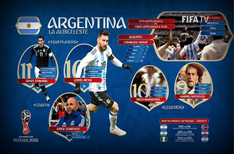 បានចូលរួមព្រឹតិ្តការណ៏ World Cup ចំនួន ១៧ដង បូករួមទាំងលើកនេះ ដោយក្រុមនេះបានចូលរួមលើកដំបូងគឺនៅក្នុងឆ្នាំ១៩៣០ និងធ្លាប់បានលើកពានពីរដង គឺក្នុងឆ្នាំ១៩៧៨ និង ១៩៨៦។