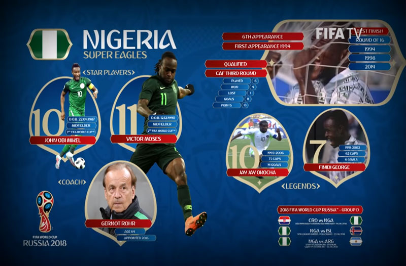 ខ្សែប្រយុទ្ធ: Odion Ighalo, Ahmed Musa, Victor Moses, Alex Iwobi, Kelechi Iheanacho, Simeon Nwankwo.