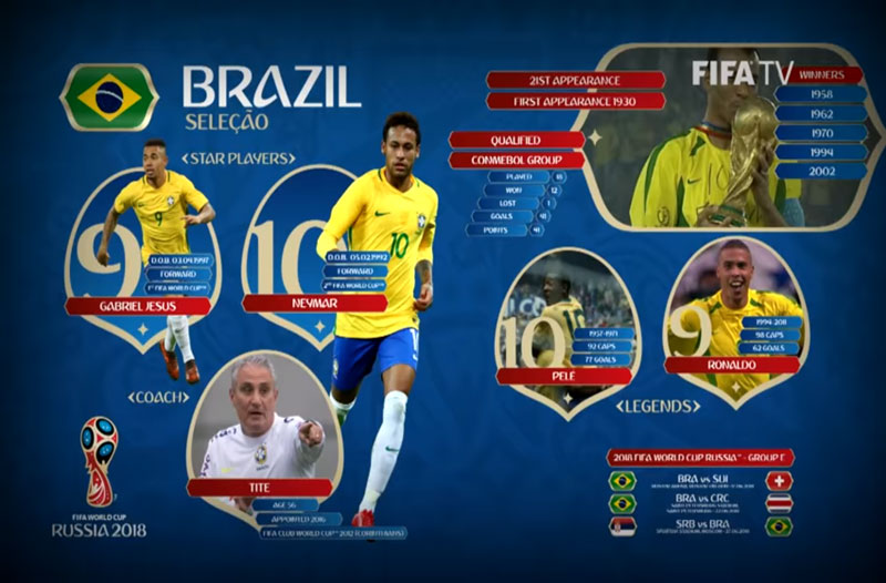 បានចូលរួមព្រឹតិ្តការណ៏ World Cup ចំនួន ២១ដង បូករួមទាំងលើកនេះ ដោយក្រុមនេះបានចូលរួមលើកដំបូងគឺនៅក្នុងឆ្នាំ១៩៣០ និងធ្លាប់បានលើកពាន ៥ដង គឺក្នុងឆ្នាំ១៩៥៨, ១៩៦២, ១៩៧០, ១៩៩៤, ២០០២។