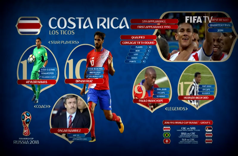 បានចូលរួមព្រឹតិ្តការណ៏ World Cup ចំនួន ៥ដង បូករួមទាំងលើកនេះ ដោយក្រុមនេះបានចូលរួមលើកដំបូងគឺនៅក្នុងឆ្នាំ១៩៩០ និងធ្លាប់បានមកដល់វគ្គ ៨ក្រុមចុងក្រោយម្តង គឺក្នុងឆ្នាំ២០១៤។