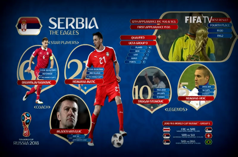 ខ្សែការពារ: Aleksandar Kolarov, Antonio Rukavina, Milan Rodic, Branislav Ivanovic, Uros Spajic, Milos Veljkovic, Dusko Tosic, Nikola Milenkovic