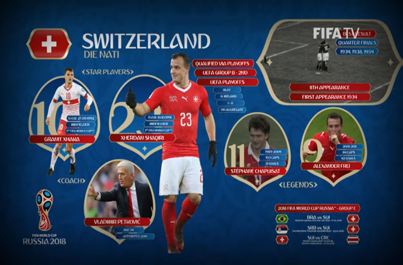 ខ្សែប្រយុទ្ធ: Josip Drmic (Borussia Moenchengladbach), Breel Embolo (Schalke), Mario Gavranovic (Dinamo Zagreb), Haris Seferovic (Benfica)