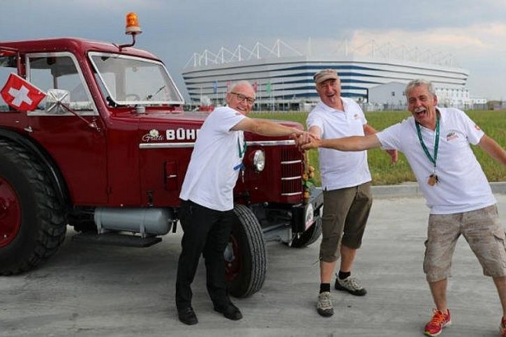 អ្នកគាំទ្រក្រុមបាល់ទាត់ជម្រើសជាតិ ស្វីសបីនាក់បានប្រើត្រាក់ទ័រមួយគ្រឿងបើកបរក្នុងរយៈចម្ងាយ ១៨០០គីឡូម៉ែត្រដើម្បីទៅចូលរួមក្រុមជម្រើសជាតិរបស់ខ្លួនចូលរួមក្នុងការប្រកួត World Cup កំលុងពេលក្រុមជម្រើសជាតិស្វីសត្រូវប្រកួតជាមួយក្រុមស៊ែបី នៅកីឡាដ្ឋាន Kaliningrad។