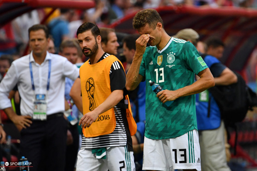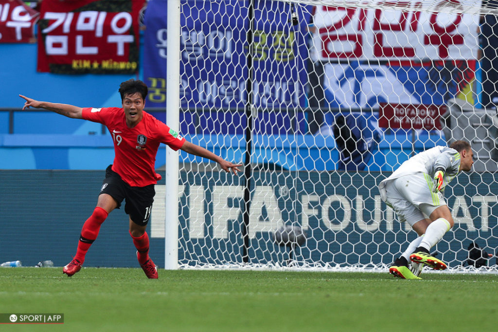 ចំណែកក្រុមការពារតំណែងជើងឯកចាស់ អាល្លឺម៉ង់ បានក្អួតឈាមក្នុងការប្រកួតចុងក្រោយនេះដែលគ្រប់គ្នាគិតថា មិនលំបាកយកឈ្នះកូរ៉េខាងត្បូងឡើយ ប៉ុន្តែបែរជាត្រូវហាលអាវត្រឹមវគ្គសន្សំពិន្ទុក្នុងពូល បន្ទាប់ពីចាញ់កូរ៉េខាងត្បូង ២-០។ វាស្ទើរតែមិនជឿដែលក្រុមខ្លាំងលើលោកអាល្លឺម៉ង់មិនអាចធ្វើអ្វីកូរ៉េខាងត្បូងដែលមកពីអាស៊ី។ ២គ្រាប់រកកូរ៉េខាងត្បូងធ្វើបានសម្រេចដោយកីឡាករ Y.Kim នៅនាទីទី៩០ និងប្រធានក្រុម H.Son នៅនាទីទី៩០+៦៕