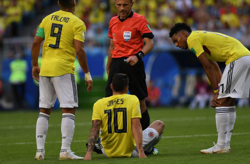 ខ្សែប្រយុទ្ធ James Rodriguez សញ្ជាតិកូឡុំប៊ីបានរងនូវការខកចិត្តរងរបួស ក្រោយពីការប៉ះទង្គិចគ្នារយៈពេល ៣០នាទីជាមួយក្រុមសេណេហ្គាល់ក្នងការប្រកួតវគ្គបញ្ចប់ក្នុងពូលព្រឹត្តការណ៏ World Cup ២០១៨ ខណៈក្រុមកូឡុំប៊ីផ្តួលសេណេហ្គាល់ក្នុងលទ្ធផល ១:០។