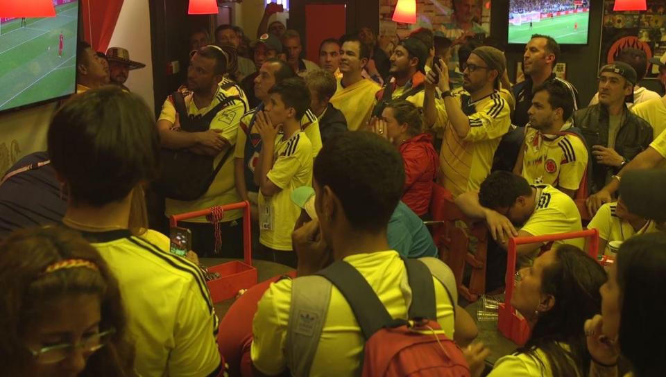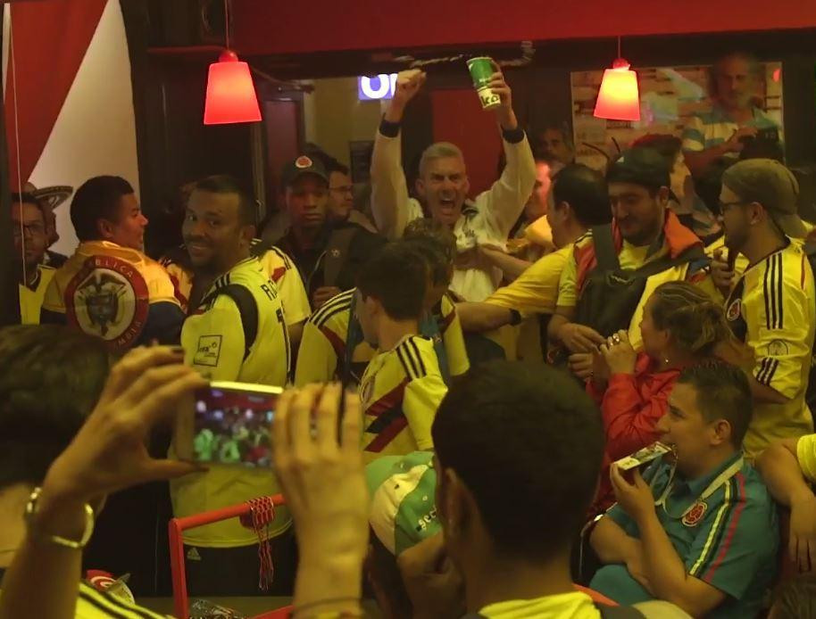 ក្នុង​វីដេអូ​ខ្លី​មួយ​បង្ហាញ​ពី​ទិដ្ឋភាព​ក្នុង​បា​មួយ​កន្លែង​នៅ​ទីក្រុង Moscow ដែល​ពោរពេញ​ទៅ​ដោយ​អ្នក​គាំទ្រ​ក្រុម​ជម្រើស​ជាតិ​កូឡុំប៊ី កំពុង​ទស្សនា​ក្រុម​ជម្រើស​ជាតិ​ខ្លួន និង​អង់គ្លេស ទាត់​បាល់​ពិន័យ​ ១១ ម៉ែត្រ ដើម្បី​កាត់​សេចក្ដី​ឡើង​វគ្គ World Cup បន្ទាប់។ នៅ​ពេល​ប្រកួត​បាន​បញ្ចប់​ដោយ​អង់គ្លេស​គឺ​ជា​អ្នក​ឈ្នះ ស្រាប់​តែ​លេច​នូវ​បុរស​ម្នាក់ ដែល​ទំនង​គាំទ្រ​ជ្រាលជ្រៅ​ក្រុម​ជម្រើស​ជាតិ​មួយ​នេះ បាន​សម្ដែង​ការ​អបអរ​យ៉ាង​ពេញ​ទំហឹង ហើយ​ស្រែក​ខ្លាំងៗ នៅ​ក្នុង​ហ្វូង​អ្នក​គាំទ្រ​កូឡុំប៊ី។
