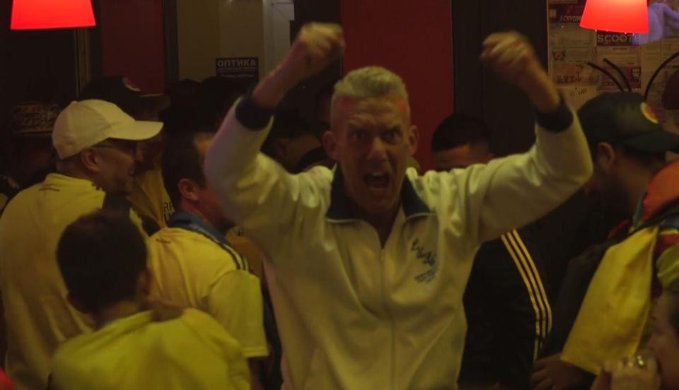 ក្នុង​ប្រកួត​វគ្គ ១៦ ក្រុម​រំលង​អាធ្រាត្រ​ម្សិលមិញ អង់គ្លេស​បាន​យក​ឈ្នះ​កូឡុំប៊ី​ក្នុង​វគ្គ​ទាត់​បាល់​ពិន័យ ១១​ ម៉ែត្រ។ ការ​ឈ្នះ​នេះ ធ្វើ​ឲ្យ​អ្នក​គាំទ្រ​អង់គ្លេស​ជា​ច្រើន សប្បាយ​ចិត្ត​យ៉ាង​ខ្លាំង។ ក្នុង​នោះ​ក៏​រាប់​បញ្ចូល​បុរស​ម្នាក់ ដែល​មិន​ញញើត​អបអរ​ពេញ​ទំហឹង ក្នុង​បា​មួយ​ដែល​ពោរពេញ​ទៅ​ដោយ​អ្នក​គាំទ្រ​កូឡុំប៊ី។