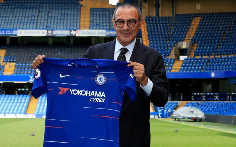 បុរសវ័យ ៥៩ឆ្នាំសញ្ជាតិអ៊ីតាលីរូបនេះមកដល់ Stamford Bridge គឺមកជំនួសកៅអីរបស់លោក Antonio Conte ដែលត្រូវបណ្ដេញចេញ មួយឆ្នាំក្រោយដឹកនាំ Chelsea ពោលធ្វើឲ្យក្លឹបធ្លាក់ខ្លួនផុងកាន់តែជ្រៅ ដោយមិនជាប់ក្នុងវគ្គជំរុះនៃក្របខណ្ឌកំពូលអឺរ៉ុប UEFA Champions League បានត្រឹមលេងនៅពាន Europa League តែប៉ុណ្ណោះ។ ការមកដល់របស់ Sarri អតីតគ្រូបង្វឹកក្លឹប FC Napoli រូបនេះបាននាំយកកីឡាករដំបូងក្រោមការដឹកនាំរបស់លោក គឺកីឡាករខ្សែបំរើកណ្ដាលសញ្ជាតិអ៊ីតាលី Jorginho បានសម្រេចចិត្តដើរតាមលោកពីក្លឹប Napoli មកចូលរួមនៅ Chelsea ដើម្បីពង្រឹងតំបន់ខ្សែបំរើកណ្ដាល ឲ្យកាន់តែរឹងមាំនឹងខ្លាំងពេលអនាគត។