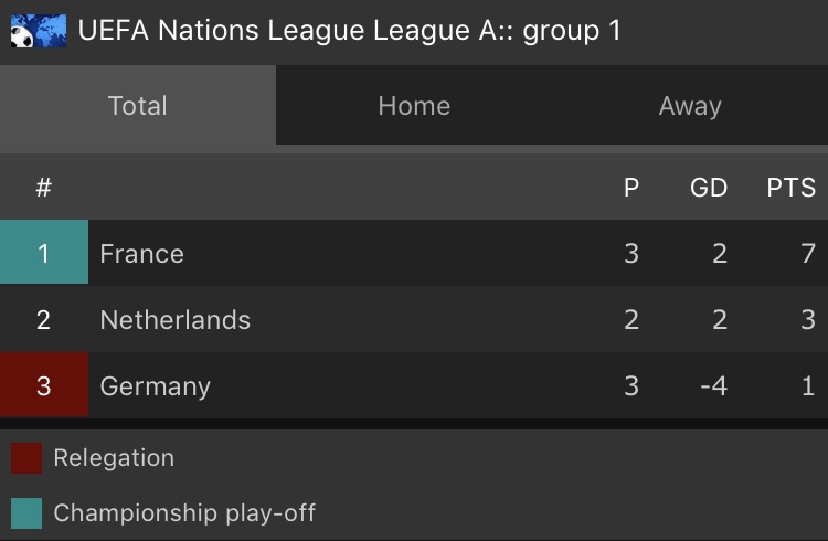 លទ្ធផលនេះ បានធ្វើឲ្យអាល្លឺម៉ង់ បរាជ័យលើកទី៦ គិតក្នុងឆ្នាំ២០១៨ និងចាញ់២ប្រកួតជាប់ៗគ្នា ជាលើកដំបូង គិតតាំងពីឆ្នាំ២០០០ បន្ទាប់ពីប្រកួតមុនចាញ់ហូឡង់ ៣-០ ផងដែរ។ អាល្លឺម៉ង់ មានត្រឹម១ពិន្ទុ ក្នុងពូល A ដែលកំពុងប្រឈម ធ្លាក់ទៅ UEFA Nations League B៕