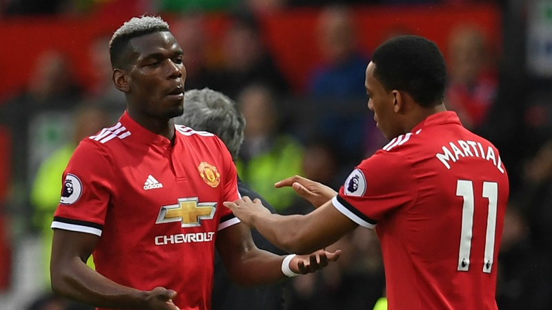 កីឡាកររបស់ក្លិប Manchester United ទាំង២រូបនេះ បានធ្វើដំណើរទៅកាន់ទីលានហ្វឹកហាត់នៅ Clairefontaine របស់ក្រុមបាល់ទាត់ជម្រើសជាតិបារាំង ប៉ុន្តែ ត្រូវបានអនុញ្ញាតឲ្យចាកចេញវិញ ក្រោយពីការត្រួតពិនិត្យផ្សេងៗដោយវេជ្ជបណ្ឌិតប្រចាំក្រុមលោក Franck Le Gall។ Pogba ត្រូវបានពិនិត្យឃើញថា មានបញ្ហាសាច់ដុំនៅត្រង់ភ្លៅខាងឆ្វេងរបស់គេ ខណៈដែល Martial មានបញ្ហាហត្រង់សាច់ដុំទាញ។ ខ្សែបម្រើ Pogba បានអវត្តមានក្នុងពេលក្រុម Man United បានរងបរាជ័យក្នុងលទ្ធផល ៣-១ ក្រោមស្នាដៃក្រុម Manchester City ក្នុងការប្រកួតក្របខ័ណ្ឌ Premier League កាលពីថ្ងៃអាទិត្យ។ ខ្សែប្រយុទ្ធ Martial បានលេងរយៈពេល៩០នាទីពេញ និងបានរកគ្រាប់បាល់ឲ្យក្រុម Man United ពីចំណុចពិន័យ១១ម៉ែត្រ ក្នុងតង់ទី២។