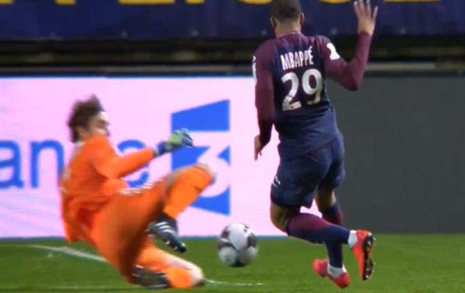 ក្រុមម្ចាស់ផ្ទះ Amiens ត្រូវលេងដោយនៅសល់កីឡាករតែ ១០នាក់ក្រោយពីអ្នកចាំទី កីឡាករ Regis Gurtner ត្រូវបានបណ្តេញចេញពីការប្រកួត បន្ទាប់ពីបង្កកំហុស លើខ្សែប្រយុទ្ធ Kylian Mbappe។
