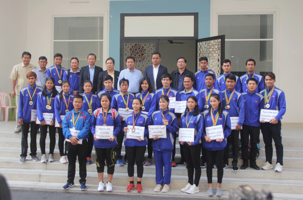 ក្រុមអត្តពលិកកីឡាវ៉ូវីណាម និងកីឡាគុនដាវកម្ពុជា ដែលដណ្តើមបានមេដាយមាស ប្រាក់ និងសំរឹទ្ធ ពីការប្រកួតជើងឯកអាស៊ាន នៅប្រទេសមីយ៉ាន់ម៉ា និងម៉ាឡេស៊ី កាលពីឆ្នាំ២០១៨ កន្លងមកនេះ ត្រូវបានរាជរដ្ឋាភិបាល តាមរយៈក្រសួងអប់រំ យុវជន និងកីឡា ប្រគល់ប្រាក់រង្វាន់ជូនពួកគេ កាលពីព្រឹកថ្ងៃព្រហស្បតិ៍នេះ។