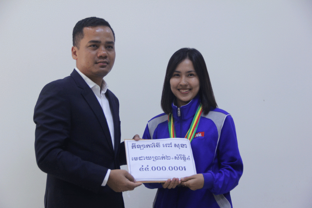 ពីការប្រកួតកីឡាវ៉ូវីណាមជើងឯកអាស៊ីអាគ្នេយ៍ លើកទី៥ ឆ្នាំ២០១៨ នៅប្រទេសមីយ៉ាន់ម៉ា កាលពីថ្ងៃទី៧ ដល់ទី១២ ខែសីហា កន្លងមកនេះ បានទទួលប្រាក់រង្វាន់សរុបចំនួន៤៤៧ ៣០០ ០០០រៀល។