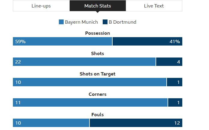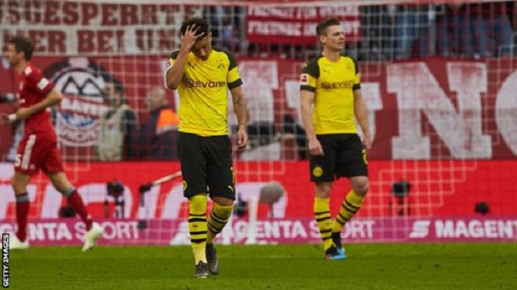 ក្រុម Dortmund បានបាត់បង់ឪកាសឈរកំពូលតារាងជាមួយការនាំមុខ២ ពិន្ទុក្រោយរងបរាជ័យយ៉ាងអាម៉ាស់នៅក្នុង សប្តាហ៏ ទី២៨នេះ ។ គ្រាប់បាល់ទាំង៥គ្រាប់របស់កីឡាករ Robert Lewandowski, Mats Hummels, Serge Gnabry និង Javi Martinez បានធ្វើឱ្យ Bayern ទទួលបាន ៤-0 នៅតង់ទី ១ បានជួយអោយក្រុមម្ចាស់ផ្ទះនាំមុខភ្ញៀវរហូតដល់ទៅ៤គ្រាប់មុនពេល​​ Lewandowski បន្ថែមគ្រាប់បាល់ទី២នៅនាទីទី៨៩ ។ បញ្ចប់ការប្រកួតBayern Munich ៥:0Dortmund ។