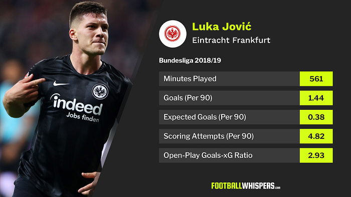 យ៉ាងណាមិញ Jovic បានបង្ហាញពីទម្រង់លេងល្អឱ្យក្រុមនៅលីកកំពូល Bundesliga រដូវកាលនេះបាន ៤៧ប្រកួតដោយរកបាន ២៧គ្រាប់និងចែកបាល់អោយមិត្តរួមក្រុម(Assist) ចំនួន ៧គ្រាប់ និងជួយក្រុមកំពុងឈរនៅចំណាត់ថ្នាក់ទី៦។