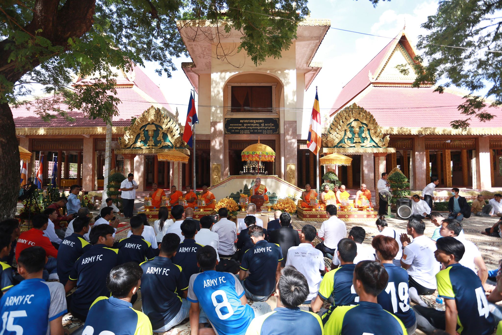 គួរបញ្ជាក់ថា លោក តែម ម៉ឺន ព្រមទាំងថ្នាក់ដឹកនាំផ្សេងទៀតរបស់ សមាគមកីឡាបាល់ទាត់កងយោធពលខេមរភូមិន្ទ ព្រមទាំងដៃគូសហការមួយចំនួនទៀត បាននាំកីឡាករ និងគ្រូបង្វឹក ឲ្យចូលរួមនៅក្នុងពិធីសូត្រមន្តប្រោះព្រំ និងសមាធិ នៅវត្តសុវណ្ណមុនីសាគរសំរោងអណ្តែត កាលពីថ្ងៃសៅរ៍ ហើយនៅក្នុងពិធីនោះ ព្រះសង្ឃចំនួន៩អង្គ បានសូត្រព្រះបរិត្តប្រោះព្រំ ផ្តល់ឱវាទ និងឲ្យអ្នកចូលរួមទាំងអស់ តាំងសមាធិ ដើម្បីពង្រឹងផ្លូវចិត្តឲ្យបានល្អ។